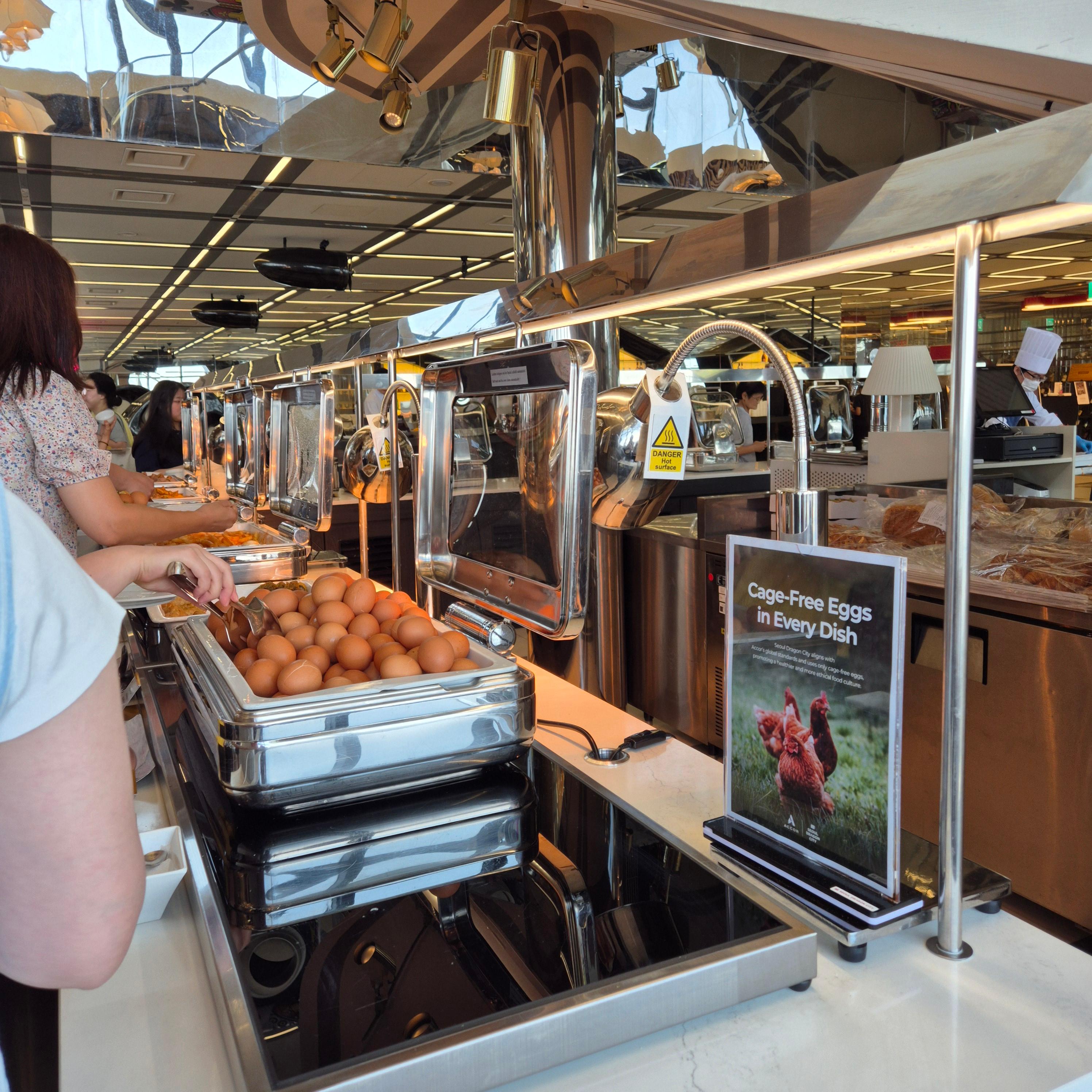 - 라이브 코너 냉면, 신선한 과일/샐러드, 소시지가 베스트 메뉴